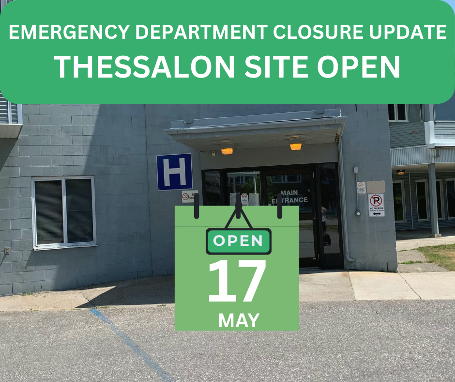 UPDATED: NOW OPEN! UPCOMING EMERGENCY DEPARTMENT CLOSURE - THESSALON SITE (MAY 13/25)